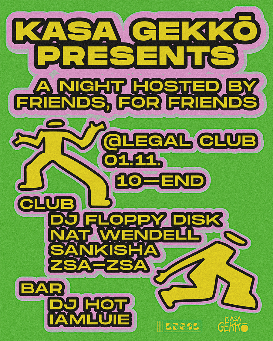 Gegründet 2022 ist Kasa Gekkō ein Eventkollektiv von fünf Musikliebhaber*innen. Das Kollektiv sucht nach besonderen Momenten und Atmosphären und hat eine Community in Portugal, Deutschland und den Niederlanden aufgebaut.