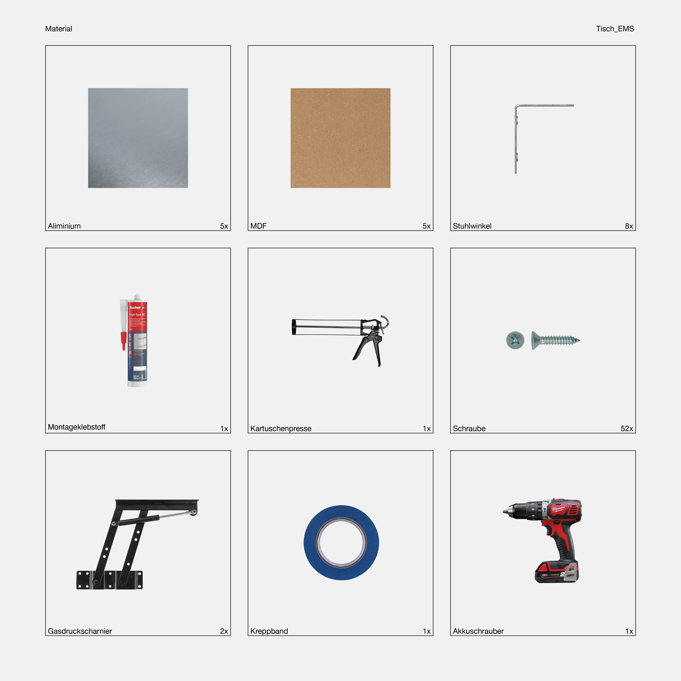 MöbelbauHöhenverstelbarer Couchtisch aus Holzverbund und Aluminium.